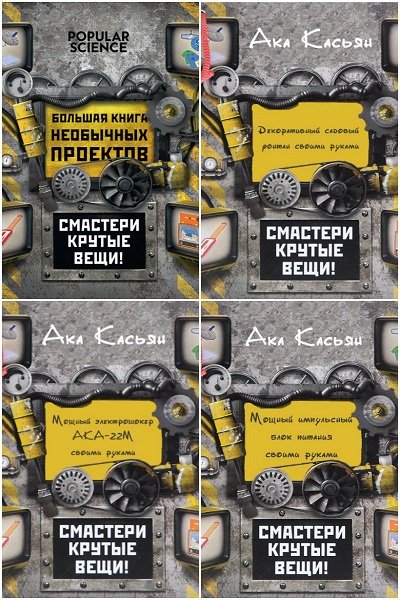 Серия 4 книги - "Смастери крутые вещи" научат Вас как в домашних условиях своими руками можно собрать мощный электрошокер, импульсный блок питания, декоративный садовый фонтан, сотворить скейтборд с пропеллером, светящийся напиток, ножную компьютерную мышь, дискотеку на велосипеде и еще 260 потрясающих вещей.